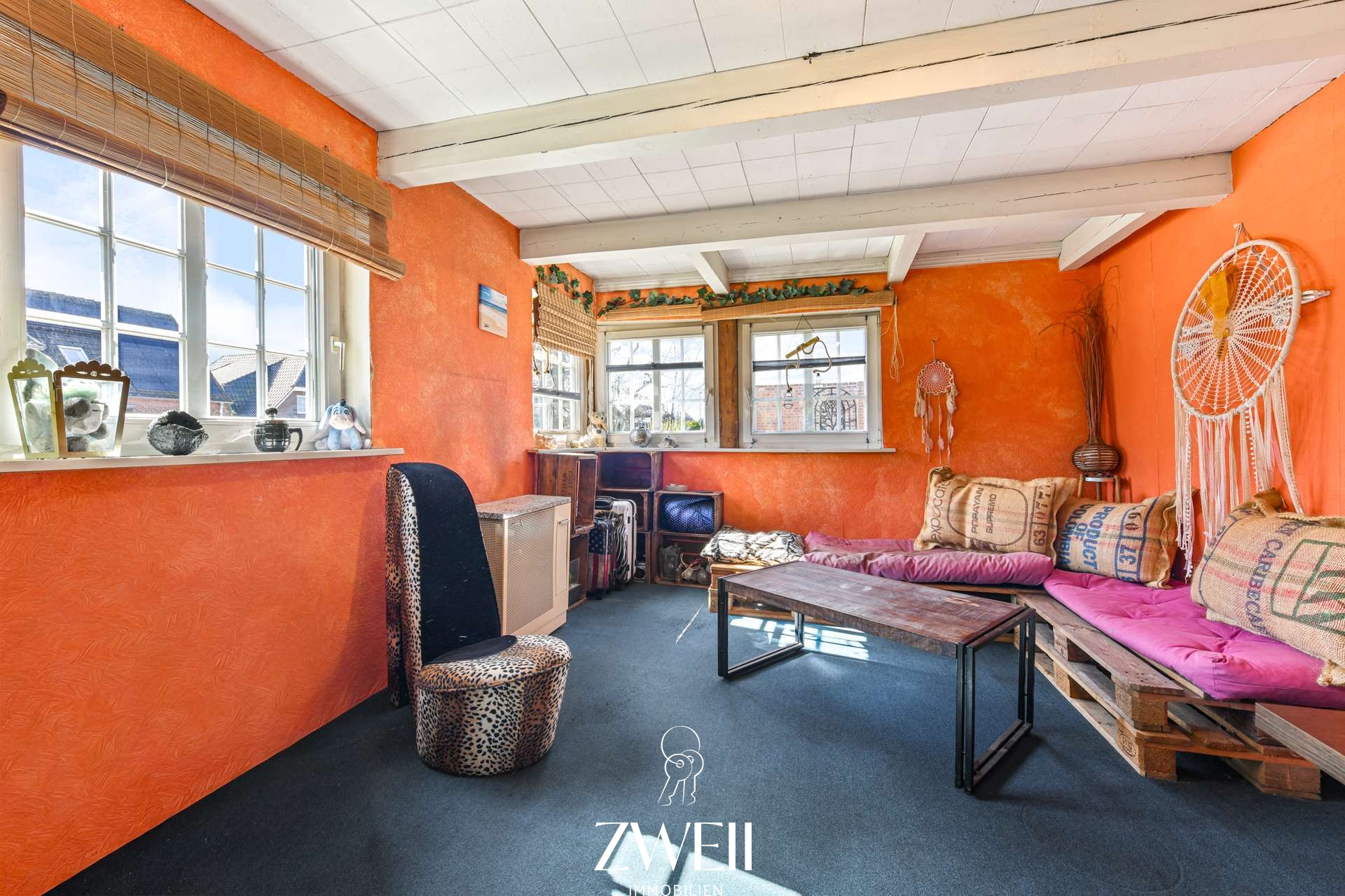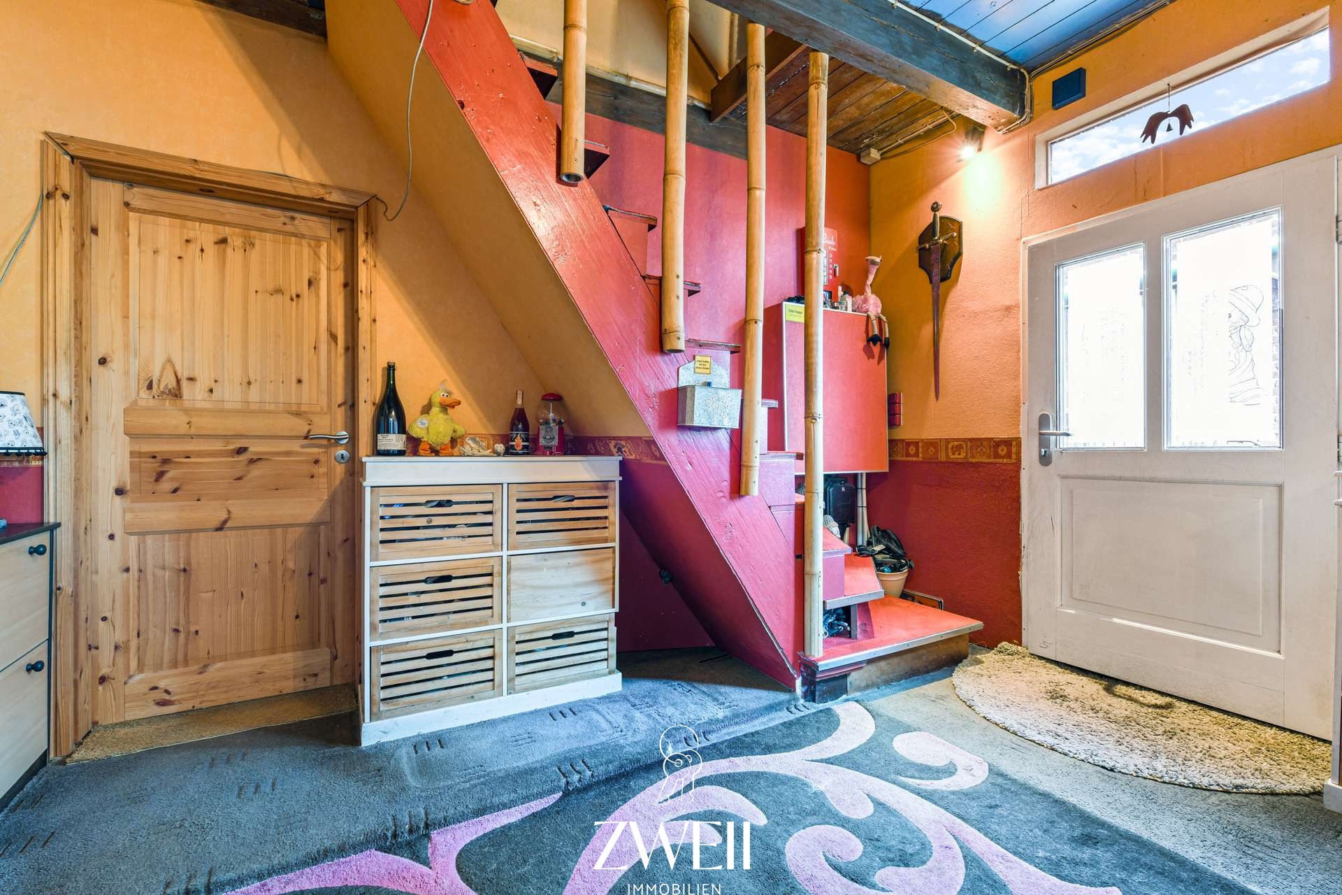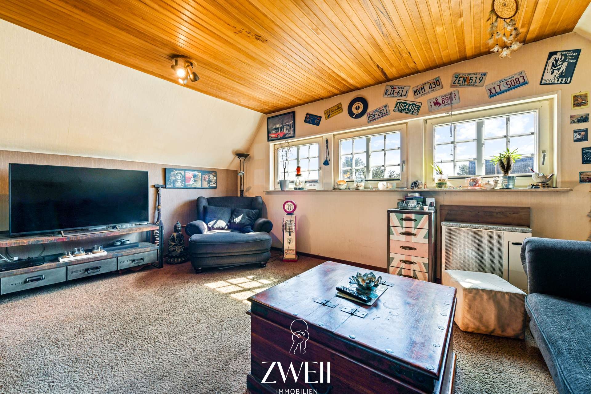 Das Wohnhaus verfügt über eine Wohnfläche von rund 135 m² und erstreckt sich über zwei Etagen. Im Erdgeschoss bildet ein zentraler Flur den Ausgangspunkt, von dem aus alle Räume erreichbar sind. Hier befinden sich drei Zimmer: ein großzügiges Wohnzimmer, das ehemals als Ausstellungsraum des Museums genutzt wurde, sowie ein Gästezimmer und ein Büro. Ergänzt wird das Raumangebot auf dieser Ebene durch ein Badezimmer sowie ein separates Gäste WC. Das Obergeschoss umfasst ein weiteres Wohnzimmer, ein Schlafzimmer, eine Küche, einen Abstellraum sowie ein Wannenbad mit Veluxfenster. Zusätzlichen Stauraum bieten ein für das Baujahr typischer Kriechkeller sowie ein Dachboden.